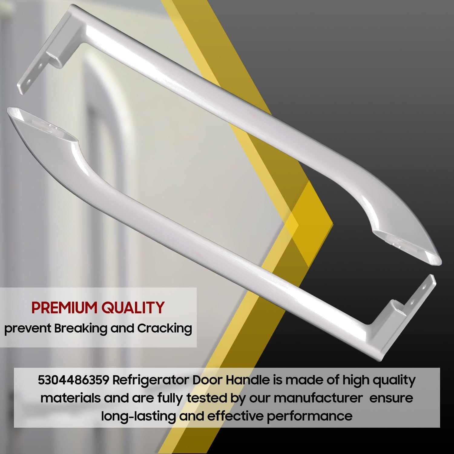 Store New Arrivals Add to Favorite View Feedback Contact Upgraded 5304486359 Refrigerator Door Handle, Compatible with Frigidaire Refrigerator - Replaces AP6036330 5304506469 5304504507 242059501 242059504 (Pack 2) Description Item model number 5304486359 Number of Items 2 Material Type Stainless Steel Shape Rectangular Finish Type Painted Batteries Included? No Unit Count 2.0 Count Batteries Required? No Exterior Finish Stainless Steel Material Stainless Steel Metal Type Stainless Steel Hand Orientation Ambidextrous Style Compatible Handle Type Lever Item Weight 1.01 pounds Special Features Easy to Install, Durable Special Feature Easy to Install, Durable Part Number 5304486359 Color Silver Model Info 5304486359 Specific Uses For Product Refrigerator Door Handle Material Stainless Steel Included Components Screwdriver Product Dimensions 4"L x 3"W MODEL NUMBER: 5304486359 Refrigerator Door Handle. Replace part number: 5304510040, AP6036330, 242059501, 242059504, 5304486359, 5304497105, 5304504507, 5304510038 EASY TO INSTALL: It is made exactly fit for Frigidaire, Uni. Fits Models: FFTR1814QW4A FFTR1821QW0 FFTR1821QW1 FFTR1814QW3 LFTR1814LWK LFHT1831QP2 FFTR1814LWJ FFTR1821QW3β¦ PRODUCT SPECIFICATIONS: Measures roughly 17" in length. It can be installed with a screwdriver to allow the door to be opened and closed. If your handle is visibly broken then it should be replaced. Refer to your model number, and user manual to see if this part is right for you HIGH-QUALITY PART: The part is made from durable high quality material and well-tested by the manufacturer - Ensure long-lasting and effective performance. This part fixes the following symptoms: Door wonβt open or close ππ’π‘πππππ‘π§ π£π¨π₯ππππ¦ππ¦: Enjoy a 30-day return window on your purchase. Your satisfaction is our priority. If you have any questions, please don't hesitate to contact our customer service team. Product Description PERFECT FIT 5304486359 Door Handle is made from durable high quality material and well-tested by the manufacturer ensure long-lasting and effective performance 5304486359 Refrigerator Door Handle (Pack of 2) This Refrigerator Handle set comes in 2 pieces, and measures roughly 17" in length. It can be installed with a screwdriver to allow the door to be opened and closed. If your handle is visibly broken then it should be replaced. COMPATIBLE BRANDS: It is made exactly fit for most top name brands (Frigidaire, Uni) Durable high quality material Well-tested by the manufacturer Premium Quality: Comparable to OEM part Only requires a screwdriver.You will remove the 2 screws located on the top of the fridge door and slide the old handle out of place.ake your new handle and use your screwdriver to position back into place. Screws not included. Weβre happy to help ensure you select the right replacements for your refrigerator. ABOUT US We offer the best prices around on high quality products. Our E-store includes media such as books, movies, music and games while offering electronics, toys, sporting apparel, clothing, tools, general home, garden items and more. SHIPPING We are always working hard to ensure your package arrives as soon as possible. Please understand that some factors like weather, high postal traffic, and the performance of shipping companies are outside of our control. We offer free shipping to the lower 48 states and ship within 2 business days of payment, usually sooner. We do not accept P.O. Boxes. Please provide a physical address. For shipping outside of the continental USA, we only use eBay's Global Shipping Program.The item is shipped to KY and then sent to the rest of the world. International customers are responsible for all duties and taxes. Continue to check out in order to calculate costs for shipping the item to your country. Messages regarding eBay's Global Shipping Program MUST be directed at eBay EXCLUSIVELY. RETURNS We offer a 30-Day Return Policy on items which you are not completely satisfied with. You have the option for a full-refund or an exchange of the item. No returns are available on items shipped outside of the USA. PAYMENT We accept PayPal. CONTACT US This page content is yet to come Please ad us to your favorite seller and visit again later Thank You CUSTOMER SATISFACTION We try our very best to make sure every customer is completely satisfied. If there's a problem, message us! We're happy to help. WE ACCEPT Copyright Β© 2021 AutoDS. | All Rights Reserved
