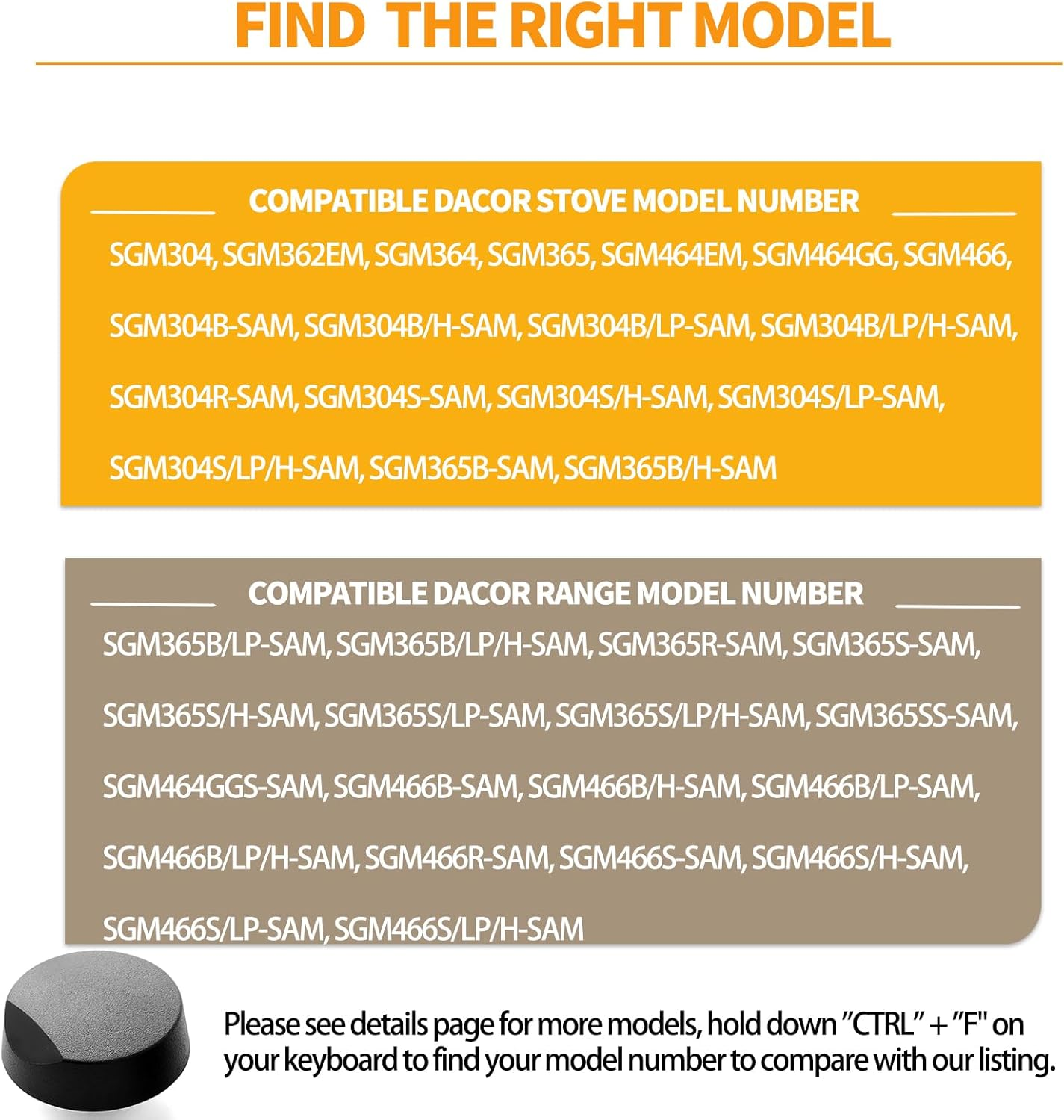 Store New Arrivals Add to Favorite View Feedback Upgraded 82977 82974 Cooktop Knob Replacement for Dacor Stove Parts, DE81-08738A Stove Knobs for Dacor Range Parts Burner Control Knobs SGM365 DE81-10313A Black Plastic Gas Stove Top Knobs 4 Pcs Description Item model number SGM362EM, SGM364, SGM365 Manufacturer atgestore Batteries Required? No Finish Painted Special Feature Easy to Install Number of Items 4 Included Components 4 pcs stove knobs Color Black Style Knobs Handle Type Knob Brand atgestore Material Plastic Country of Origin China Item Weight 2.89 ounces Handle Material Plastic Batteries Included? No Shape Round Finish Type Painted Special Features Easy to Install Size 4 Pieces Exterior Finish Plastic Product Dimensions 0.5"L x 0.5"W Number Of Pieces 4 【UPGRADE DURABLE CONSTRUCTION】The 82977 stove knobs for dacor stove parts made of upgrade premium plastic that stronger and more sturdy than others, not easy to deform and rust/corrode, reduce dacor gas stove knob breakage. With proper maintenance, our dacor cooktop knobs sgm365 can last pretty long. 【COMPATIBLE DACOR STOVE PARTS NUMBER】82977, DE81-08738A, 82974, DE81-10313A and more.【Please see details page for more models, hold down ''CTRL'' + ''F" on your keyboard to find your model number to compare with our listing.】【PACKAGE】1 Pcs 82977 and 3 pcs 82974 black plastic Burner Control Knobs. 【COMPATIBLE DACOR RANGE MODEL NUMBER】SGM304, SGM304B, SGM362EM, SGM364, SGM365, SGM464EM, SGM464GG, SGM466, SGM304B-SAM, SGM304B/H-SAM, SGM304B/LP-SAM, SGM304B/LP/H-SAM, SGM304R-SAM, SGM304S-SAM, SGM304S/H-SAM, SGM304S/LP-SAM, SGM304S/LP/H-SAM, SGM365B-SAM, SGM365B/H-SAM, SGM365B/LP-SAM, SGM365B/LP/H-SAM and more dacor stove top knobs for gas burners. 【COMPATIBLE DACOR STOVE MODEL NUMBER】SGM365R-SAM, SGM365S-SAM, SGM365S/H-SAM, SGM365S/LP-SAM, SGM365S/LP/H-SAM, SGM365SS-SAM, SGM464GGS-SAM, SGM466B-SAM, SGM466B/H-SAM, SGM466B/LP-SAM, SGM466B/LP/H-SAM, SGM466R-SAM, SGM466S-SAM, SGM466S/H-SAM, SGM466S/LP-SAM, SGM466S/LP/H-SAM and more dacor cooktop knobs replacements. 【NOTE】Please check and compare the dimensions of your DE81-10313A dacor range knobs and look for the dacor stove model number of your stove before place the order. If still confused, please feel free to e--mail us. 【EASY FOR INSTALLATION】The DE81-08738A dacor replacement knobs are easy to install and use, without any tools, you can easily install the burner knobs and quickly get your stove burner back to work, saving your time and money. Product Description 82977 Cooktop Knob for Dacor Stove Parts The video showcases the product in use. The video guides you through product setup. The video compares multiple products. The video shows the product being unpacked. HOW TO FIND YOUR RANGE STOVE MODEL NUNBER? Hold down '' CTRL '' + '' F " on your keyboard to find your model number to compare with our listing. FITS DACOR COOKTOP KNOB PARTS PACKAGE 4 pcs range knobs. MATERIAL premium plastic. FITS DACOR STOVE PARTS 82977, DE81-08738A, 82974, DE81-10313A and more. FITS DACOR RANGE MODEL NUMBER SGM304, SGM304B, SGM362EM, SGM364, SGM365, SGM464EM, SGM464GG, SGM466, SGM304B-SAM, SGM304B/H-SAM, SGM304B/LP-SAM, SGM304B/LP/H-SAM, SGM304R-SAM, SGM304S-SAM, SGM304S/H-SAM, SGM304S/LP-SAM, SGM304S/LP/H-SAM, SGM365B-SAM, SGM365B/H-SAM, SGM365B/LP-SAM, SGM365B/LP/H-SAM and more. FITS DACOR STOVE MODEL NUMBER SGM365R-SAM, SGM365S-SAM, SGM365S/H-SAM, SGM365S/LP-SAM, SGM365S/LP/H-SAM, SGM365SS-SAM, SGM464GGS-SAM, SGM466B-SAM, SGM466B/H-SAM, SGM466B/LP-SAM, SGM466B/LP/H-SAM, SGM466R-SAM, SGM466S-SAM, SGM466S/H-SAM, SGM466S/LP-SAM, SGM466S/LP/H-SAM and more. UPGRADE DURABLE CONSTRUCTION The stove knobs for dacor stove parts made of upgrade premium plastic that stronger and more sturdy than others, heat and corrosion resistant, not easy to deform and rust. EASY FOR INSTALLATION The replacement knobs are easy to install and use, without any tools, you can easily install the burner knobs and quickly get your stove burner back to work, saving your time and money. STOVE KNOB REPLACEMENT PARTS NUMBER OF PIECES 1 Pcs NUMBER OF PIECES 5 Pcs NUMBER OF PIECES 6 Pcs MATERIAL Premium plastic MATERIAL Premium plastic MATERIAL Premium plastic ABOUT US We offer the best prices around on high quality products. Our E-store includes media such as books, movies, music and games while offering electronics, toys, sporting apparel, clothing, tools, general home, garden items and more. SHIPPING We are always working hard to ensure your package arrives as soon as possible. Please understand that some factors like weather, high postal traffic, and the performance of shipping companies are outside of our control. We offer free shipping to the lower 48 states and ship within 2 business days of payment, usually sooner. We do not accept P.O. Boxes. Please provide a physical address. RETURNS We offer a 30-Day Return Policy on items which you are not completely satisfied with. You have the option for a full-refund or an exchange of the item. No returns are available on items shipped outside of the USA. PAYMENT We accept PayPal. CONTACT US This page content is yet to come Please ad us to your favorite seller and visit again later Thank You