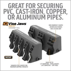 ✔ SECURE GRIP: One side of the jaws features serrated steel inserts, securing tough materials such as cast-iron and PVC pipes. This robust gripping ability is a testament to the meticulous engineering that goes into every Work IQ produc ✔ NON-MARRING RUBBER: On the flip side, our jaws feature a V-shaped overmolded rubber surface ideal for working with delicate materials like copper tubing or bicycle frames that require gentle touch ✔ WORKBENCH ENHANCEMENT: The Pipe-Fit Jaws are not just an addition to your toolkit; they are a pivotal element in transforming how you approach pipe and tubing work ✔ INSTANT UPGRADE: The IQ Vise Pipe-Fit jaws provide easy integration with the IQ Vise system elevating the functionality of your bench vise & transforming your workbench into a more productive space ✔ ADDED FUNCTIONALITY: These bench vise jaw pads are purpose-build and double sided, providing added functionality and capability to your IQ Vise and workshop