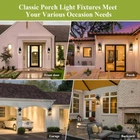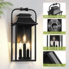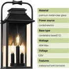Classic Creative Aesthetic Design: The main color of this wall lamp is black. The exterior lighting fixture is crafted from metal in a tall and rectangular silhouette featuring a tapered top and unique curved top handle design. The porch light uses three lights to illuminate through the glass. Front porch lantern has a simple and versatile appearance and is suitable for farmhouses, gardens, and outdoor decoration. It's open at the side for easy light cleaning and bulb replacement, shining the road to welcome you back home! Large Size & E12 Bulb Compatibility: The height of the outdoor wall lamp is 15.8 feet, and the large-size wall lamp meets the lighting needs of a large space. The black wall sconce does not include a bulb, the wall sconce base is compatible with all E12 bulbs (up to 40W) including LED, CFL, incandescent, dimmable bulbs, and more. All Weather-resistant Durability: The external metal structure ensures that the sconce wall lighting is waterproof and corrosion-resistant. The porch light work normally on rainy days, snowy days, or typhoons. Outdoor patio lighting suits various outdoor environments, including gardens, corridors, terraces, and parking lots. As a multifunctional wall light, it can decorate your outdoors or serve as a welcome light to welcome you home! Effortless Installation & Muti-Aspects Charm: The included mounting parts allow for easy installation of exterior luminaires, whether decorating a terrace or entrance, and the black exterior adds elegance to your house. Elevate your outside ambiance with this stylish and functional lighting masterpiece. Product Description Large Outdoor Wall Lantern 3-Light Classic pioneer aesthetics design, finished with a solid matte black frame and clear glass, the outside wall lamp gives a simple yet classy look. These contemporary wall lanterns with minimalist designs can essentially go with any decor. A new traditional contemporary look with cast aluminum construction ensures durability, our outdoor wall light fixture featuring with waterproof and anti-corrosion, all Weather-resistant and durability. Modern exterior wall light is an excellent addition to any indoor or outdoor space. It is perfect for installing in garages, porches, patios, and any other indoor or outdoor areas. 1 1 Exterior Wall Light 2 2 Large Porch Light 3 3 Details of Fixture