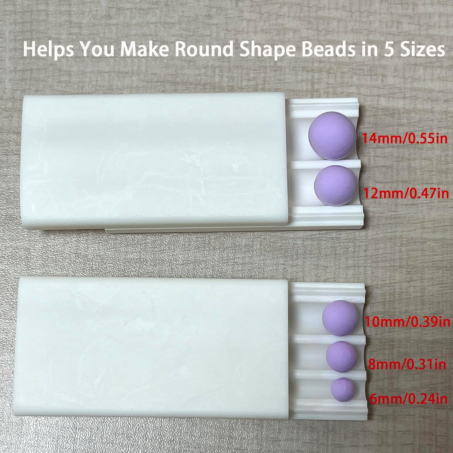 UPGRADED ROUND CLAY BEAD ROLLER: This round bead maker has been upgraded, you will no longer hear loud noises when using this tool to make round beads. And the roller has become smoother. PACKAGE CONTENTS: You will receive 2 pieces round shape polymer clay bead roller. SIZE: These bead rollers will help you make round shape beads in 5 sizes, it creates polymer clay into circle of 6mm, 8mm, 10mm, 12mm and 14mm in diameter. EASY TO INSTALL: Simply place a small amount of clay in the hole and easily roll it to create the shapes you want. Please refer to the video for specific usage methods. These bead rollers will help you make round shape beads in 5 sizes, it creates polymer clay into circle of 6mm, 8mm, 10mm, 12mm and 14mm in diameter.