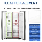 [Upgraded] W11130203 Freezer Glass Shelf, Refrigerator Glass Door Shelf (Lower) fit for Whirlpool Refrigerators, Size 11.7" X 10", Replaces W10527849, W10773887, WPW10527849 Description The W11130203 Freezer Glass Shelf for Whirlpool is installed on the freezer side of the Whirlpool refrigerator, and located in the 2nd position of the top glass shelf of the freezer. The dimension is 11.69 inches X 9.88 inches. The Refrigerator Glass Shelf replacement part is made of high precision process 9H hardness Tempered Glass, which is scratch resistant, break-resistant, stronger and tougher than ordinary materials. The glass shelf replacement frame on both sides is made of food grade material, which is durable and safe. Replaces Part Numbers: W10527849, W10773887, WPW10527849, AP6262440, EAP12347522, PS12347522, 4545866. Compatible with various side-by-side Whirlpool, KitchenAid, Ikea Refrigerators, Models (Begin with ISC21, KRSC5, KRSF5, WRS32, WRS57, WRS58, WRSA7): WRS321CDBM00, WRS571CIDB00, WRS571CIDB01, WRS571CIDB02, WRS571CIDM00, WRS571CIDM01, WRS571CIDM02, WRS571CIDW00, WRS571CIDW01, WRS571CIHB00, WRS571CIHB01, WRS571CIHB02, WRS571CIHB04, WRS571CIHV00, WRS571CIHV01, WRS571CIHV02, WRS571CIHV04, WRS571CIHW00, WRS571CIHW01, WRS571CIHW02, WRS571CIHW04, WRS571CIHZ00, WRS571CIHZ01, WRS571CIHZ02, WRS571CIHZ04, WRS586FIEM04, WRS588FIHB00, WRS588FIHW00, WRSA71CIHN00, WRSA71CIHN01, WRSA71CIHZ00, WRSA71CIHZ01, WRSA71CIHZ02, WRSA71CIHZ04, KRSC500ESS01, KRSC503EBS00, KRSF505EBL01, KRSF505ESS01, KRSF505EWH01, ISC21CNEDS00,etc. Warm Tips : If you are not sure whether the product is compatible with your dishwasher, please feel free to contact us, we will help you confirm it. Features: [Upgraded] W11130203 Freezer Glass Shelf, Refrigerator Glass Door Shelf fit for Whirlpool Refrigerators, Size 11.7" X 10", Replaces W10527849, W10773887, WPW10527849 Wide Applicability - This W11130203 Refrigerator Freezer Glass Shelf is compatible with Whirlpool, KitchenAid, Ikea Refrigerators, Models begin with ISC21, KRSC5, KRSF5, WRS32, WRS57, WRS58, WRSA7, including WRS321CDBM00, WRS571CIDB00, WRS571CIHB00, WRS586FIEM04, WRS588FIHB00, WRSA71CIHN00, KRSC500ESS01, KRSF505EBL01, KRSF505ESS01, ISC21CNEDS00, etc. Upgrade Material - Made of 9H hardness Tempered Glass, which is scratch resistant, break-resistant, stronger and tougher than ordinary materials. 3mm thick strengthened glass has good load-bearing performance and can bear the weight of 33KG. Far exceeds OEM standard, each of them has been strictly tested. Worth Buying - Easy to install the part yourself, just slide the Shelf in. One end has a lip, it goes in to the rear. Providing ample storage space for your frozen items, saves your time and money. If you are not sure whether the product is compatible with your refrigerator, please feel free to contact us, we will help you confirm it. What You Get- 1x W11130203 Refrigerator Freezer Glass Shelf, 1x Refrigerator Mat. We have a professional after-sales service team. For any reason you're not completely satisfied, please don't hesitate to contact us, we promise excellent quality and customer service. Customer satisfaction is our tireless pursuit. Product Details: Manufacturer: KOZHOM Part Number: W11130203 Item Weight: 1.65 pounds Product Dimensions: 11.7 x 10 x 0.3 inches Country of Origin: China Item model number: W11130203 Color: 1 Pack W11130203 Freezer Glass Shelf Included Components: 1 x W11130203 Refrigerator Freezer Glass Shelf; 1 x Fridge Mat Batteries Included?: No Batteries Required?: No Warranty Description: 1 year warranty Date First Available: November 3, 2023 Handling We will ship all orders within 3 business day of payment. Delivery We Do Not Ship Outside of the Continental US. Return Policy All items qualify for returns within 30 days of receipt. Buyer is responsible for return shipping on any item that is not damaged. Feedback We take our reputation seriously, we buy and sell online, so we understand the value of trust. If you are unsatisfied with your order, please contact us and we will work with you to resolve it to your satisfaction.