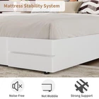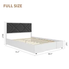Modern Upholstered Headboard for Added Comfort This stylish bed frame features a soft fabric-upholstered headboard with plush padding, offering the perfect backrest for reading, relaxing, or watching TV in bed. The clean, modern design complements a variety of bedroom décor styles—from minimalist to contemporary and classic. Quiet, Stable & Noise-Free Design Enjoy uninterrupted sleep with the bed’s reinforced metal and wooden support system. Securely positioned slats reduce mattress movement, eliminate squeaks, and ensure a stable and noise-free sleeping environment throughout the night. Compatible with 8–12 Inch Mattresses Designed to support most mattress types—including memory foam, hybrid, latex, and innerspring—this platform bed performs best with 8–12 inch mattresses. No box spring is required, providing a cleaner and more streamlined setup. Durable Wood & Metal Construction Crafted with solid wood slats and a strong metal frame, the bed delivers reliable long-term support and structural durability. The sturdy slatted base replaces bulky box springs, offering better ventilation and extended mattress lifespan. Fast & Easy Assembly All components, tools, and instructions are neatly packed for quick and simple assembly. Its versatile upholstered design blends beautifully into apartments, master bedrooms, guest rooms, and modern home interiors.