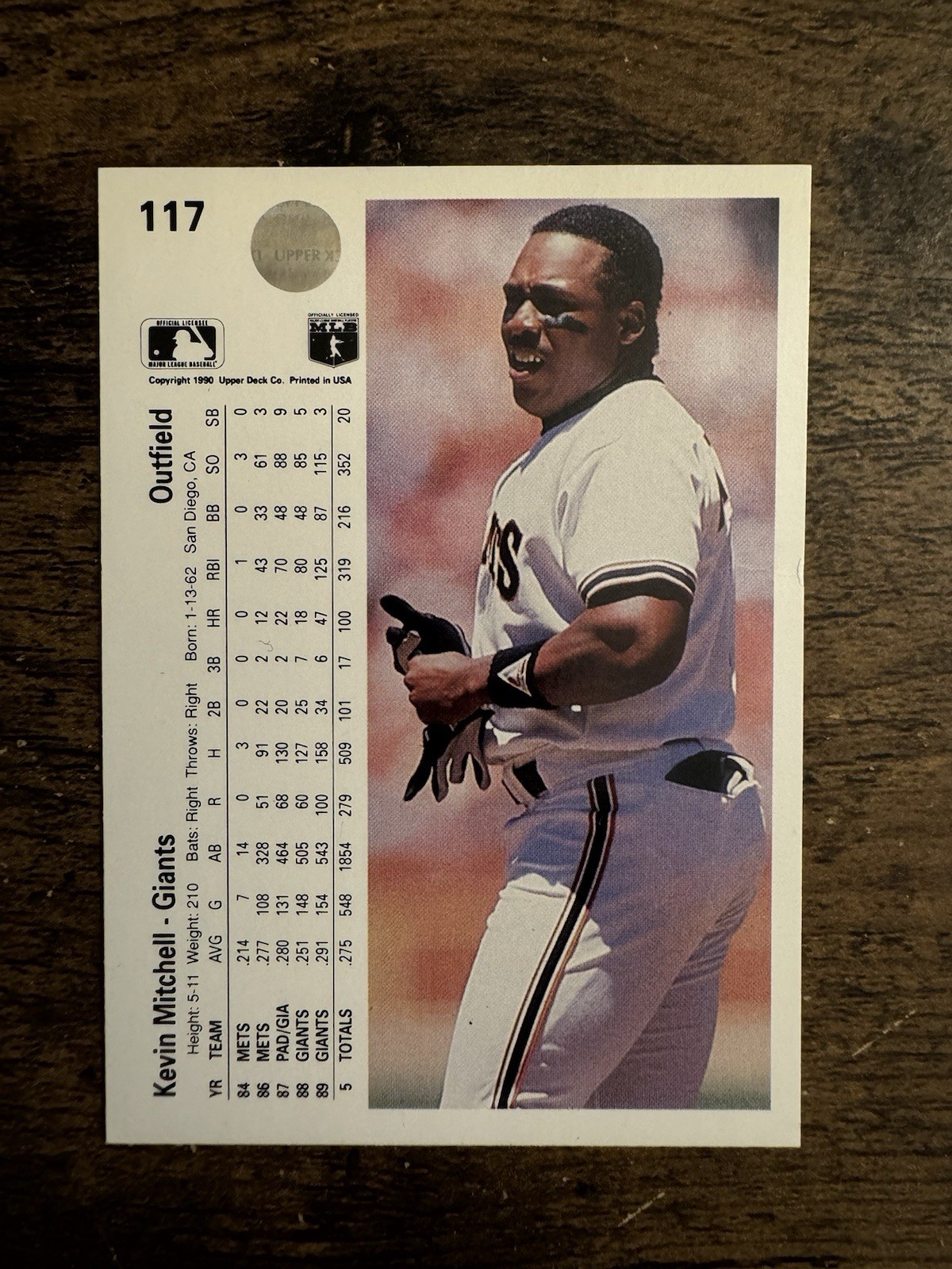 Upper Deck 1990 Kevin Mitchell OF #117 San Francisco Giants Baseball Card. Smoke free, pet free home. Shipped via eBay Standard Envelope. There is a bend on the left side of the card.