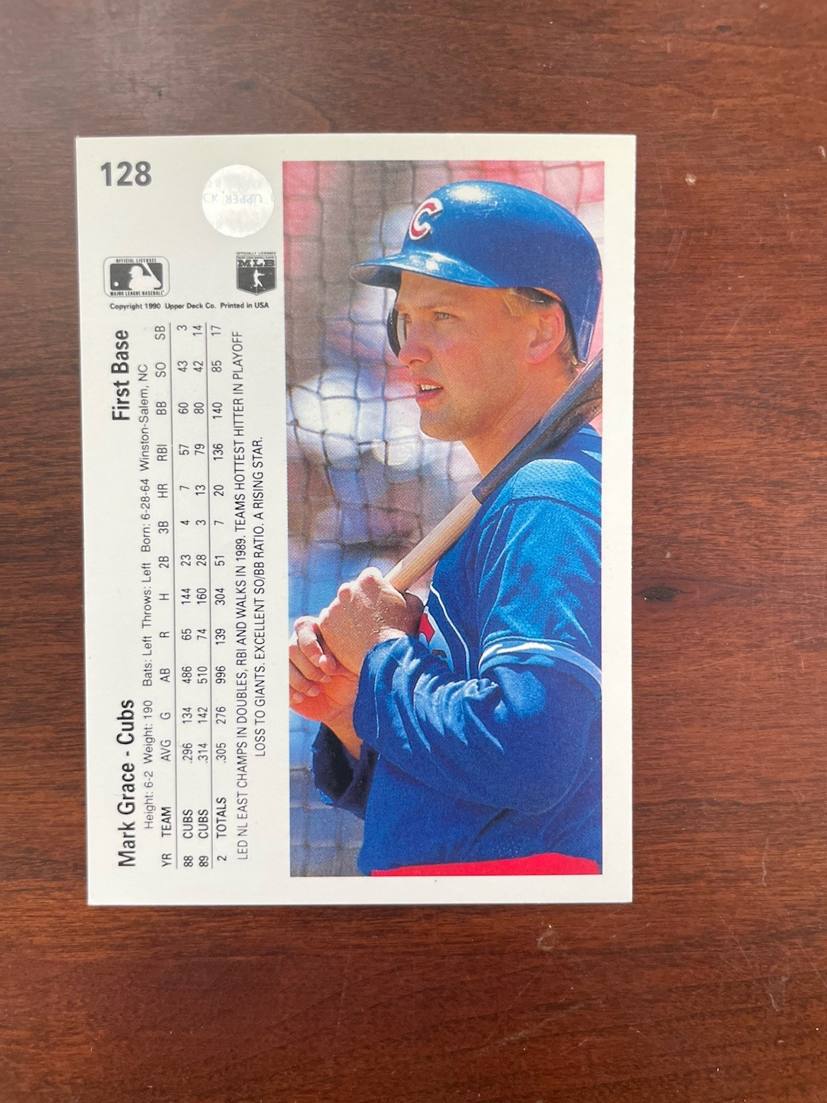 Upper Deck 1990 Mark Grace 1B #128 Chicago Cub Baseball Card. Smoke free, pet free home. Shipped via eBay Standard Envelope.