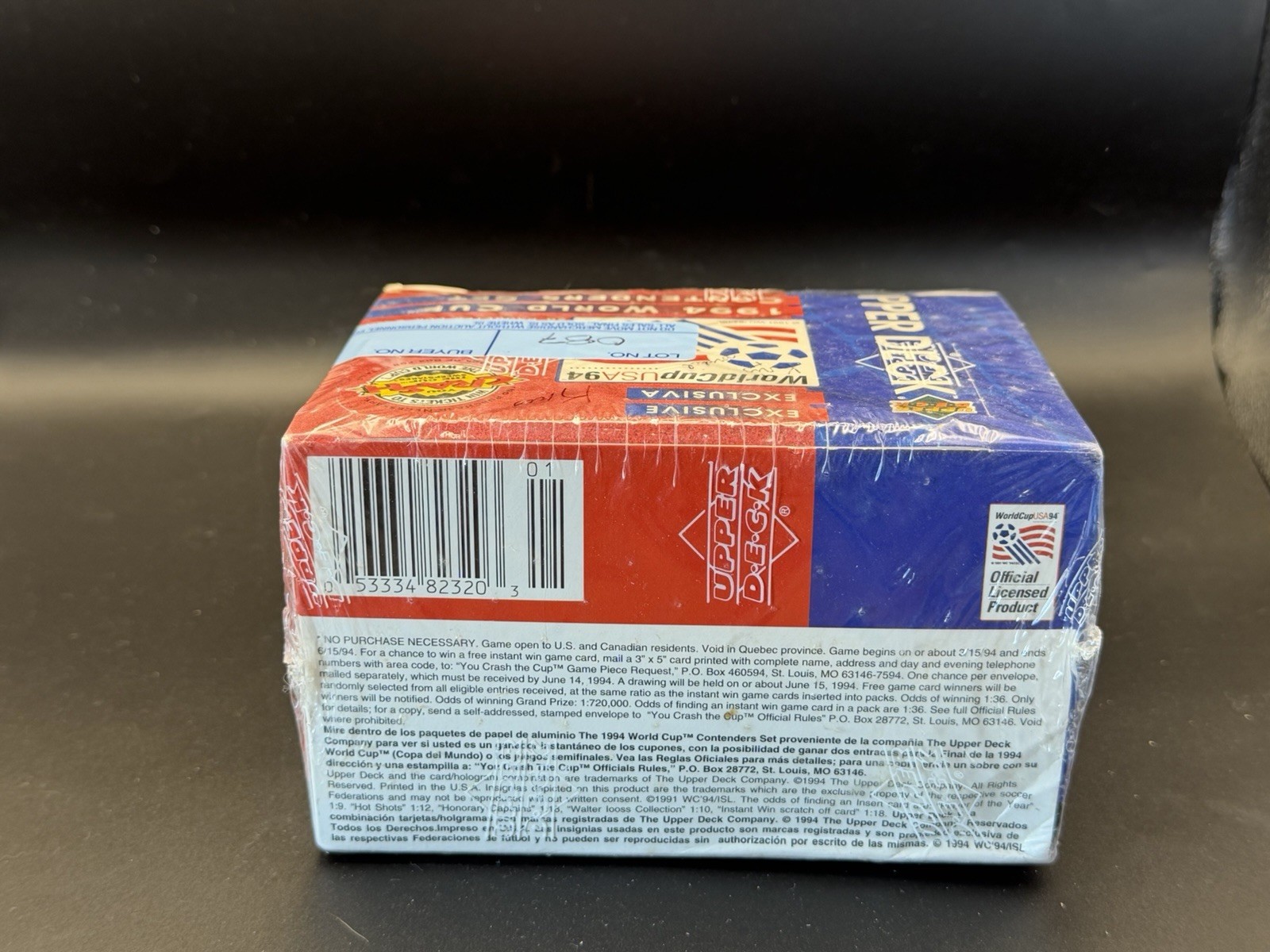 The Upper Deck 1994 World Cup Contenders Set is a collection of sports trading cards featuring soccer players from the FIFA World Cup. Manufactured by Upper Deck in the United States, the set includes standard-sized cards made of card stock. The base set includes original cards in English, making it a sought-after item for collectors of sports trading cards from the 1994 season. While the cards are not autographed, they are still licensed by Upper Deck, adding to their authenticity and value for fans of soccer memorabilia.