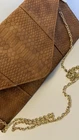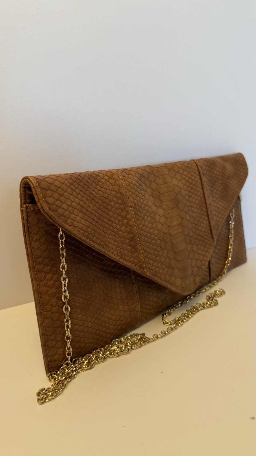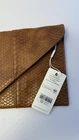 Brand new Urban Expressions vegan clutch bag in elegant tan faux snakeskin texture. This stylish envelope-style purse features a magnetic snap closure and a removable gold-tone chain strap, allowing it to be worn as a crossbody or carried as a clutch. Interior is lined with black and white striped fabric and includes a zippered pocket for organization. Made from cruelty-free, PETA-approved vegan materials, this bag is both fashionable and ethical. Original tag attached (MSRP $55). Details: • Brand: Urban Expressions • Color: Tan • Material: Vegan faux snakeskin (PETA-approved) • Style: Envelope clutch with removable chain strap • Closure: Magnetic snap • Interior: Striped lining with zippered pocket • Condition: Brand new with tag • MSRP: $55 Perfect accessory for formal events, parties, or casual outings where you want to add a touch of sophistication. CUSTOMER SATISFACTION IS OUR FIRST PRIORITY. HAPPY SHOPPING!!!!!