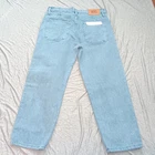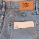 Urban Outfitters BDG Men's Jeans in a relaxed fit, size 30x32 with a light wash denim fabric. These wide-leg jeans feature a high rise and a 5-pocket design. The design includes button and zipper accents, and the brand logo. The style is inspired by 90s grunge and skateboarding culture, perfect for a classic, hip-hop look. Made of breathable cotton material, these jeans are suitable for all seasons. There is some black marker on the front tag, otherwise, in excellent condition. The measurements are in the photos. Please see the photos attached for details.