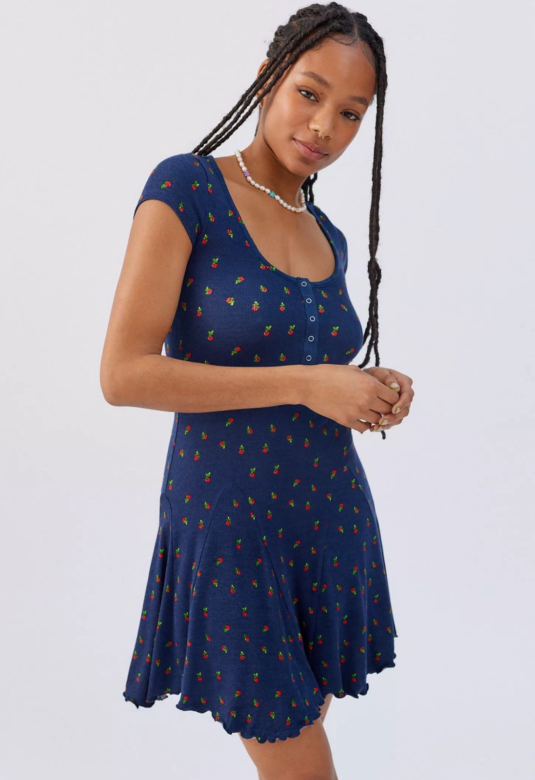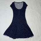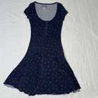 Measurements are shown in photos and taken flat, please view all pictures to ensure satisfaction Fabric is lightweight & stretchy ! Has a drop waist and flowy bottom. A beautiful scoop neck retro dress Body : 95% Viscose 5% Elastane RN 66170 CA 32054 Urban Outfitters Blue Dress Flowers