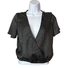 Great preowned condition (see pics for details) Features: • Style Profile: whimsigoth dark romance coquette fairy grunge y2k retro lightweight cropped polka-dot wrap feminine • Flaws: no holes, stains or tears. Measurements: • Pit to Pit 19.5" • Shoulder to bottom hem 18" • We are happy to answer any questions. • Washing Instruction: Dry clean only Size: SP Super fast shipping: We ship out the next business day!