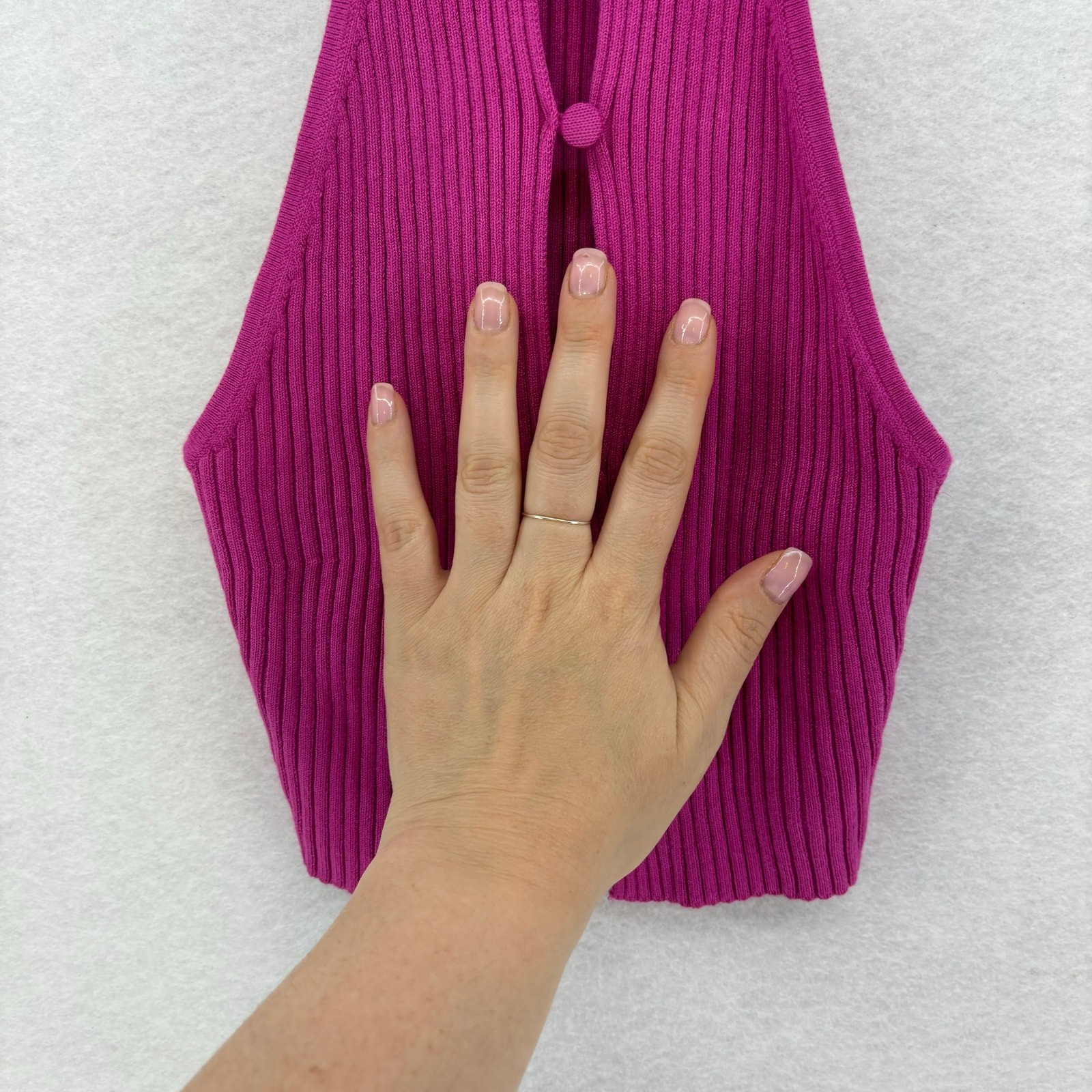pre-loved, overall Great condition URBAN OUTFITTERS Hot Pink Ribbed Sweater Crop Top Peek a Boo Button Closure VERY Stretchy Size XS #cropped #sexy #summer #ribbed #preppy See Photos for Measurements T346
