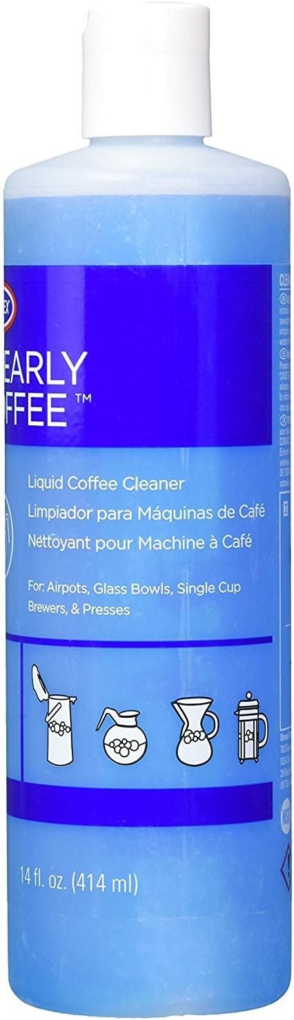 Urnex Clearly Coffee Pot Cleaner - 3 Pack - Made in the 14 Fl Oz (Pack of 3) Product Details Is Discontinued By Manufacturer : No Product Dimensions : 8.5 x 8 x 3 inches; 3.04 Pounds Manufacturer : Urnex Brand: Urnex Item Form: Liquid Scent: Unscented Specific Uses For Product: Metal Material Feature: Natural Cleans and removes coffee oils and inhibits additional mineral deposits For glass bowls, airpots, satellite brewers, and thermal servers Liquid provides counter top convenience NSF certified for metal compatibility and safety - Made in USA Blue color ensures proper rinsing Coffee is a naturally oily substance. These oils accumulate inside coffee pots after repeated use and, over time, cause beverages to taste bitter and unpleasant. If a machine is left alone without cleaning for long enough, coffee oil residue can cause clogging and blockages that render a machine unusable. Cleaning your coffee equipment with Urnex products helps to ensure proper hygiene, reliable performance, and a great tasting cup of coffee. Urnex offers a variety of cleaning formulations in tablet, liquid and powder form to suit the unique shapes, sizes and needs of coffee and espresso machines and the people who are operating them. Commercial brewers should be cleaned each night after service. This will prevent the accumulation of stale coffee oils which can impact the taste of the next day's brews. Weekly, take off removable parts such as site glasses, etc. and give these a thorough cleaning as well. Finally, always remember to wipe down the area around the spray head as splashed- back coffee can accumulate there as well. How often should I clean my commercial espresso machine? Commercial espresso machines should be cleaned by back flushing with espresso machine detergent each night. Nightly back flushing will prevent the accumulation of stale coffee oils in the group heads, shower screens and filter baskets of your espresso machine. Keeping these parts clean is essential to maintaining great tasting coffee over time. Weekly, you should soak portafilters and baskets in a solution of espresso machine detergent and water.