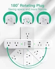 USB Outlet Extender Surge Protector - with Rotating Plug, 6 AC Multi Plug Outlet and 3 USB Ports (1 USB C), 1800 Joules, 3-Sided Swivel Power Strip with Spaced Outlet Splitter for Home, Office, Travel 【9 IN 1 Function USB Wall Outlet】- 6 AC outlet splitter (3 side, 15A/125V/1875W) with built-in 1800 Joules surge protector and 3 USB charging ports (1 USB C, total output DC 5V/3.1A), 180 degree rotating AC plug. The grounded indicator light that assures your devices are secure. 【USB- C Smart Charging Ports】- With built-in smart IC technology, high-speed USB ports automatically detect charging devices and deliver optimal charging speed, USB A up to 2.4A/5V per port, USB C up to 3A/5V max, are compatible with most USB devices. 【1800J Surge Protector Outlet】- The multiple plug outlet provide surge protector electrical spikes. 3 complementary Surge Protection Circuits, TVS(transient voltage suppressor) MOV(metal oxide varistor) GDT(gas discharge tube), with response speed less than 1Ns, and minimum energy-absorbing capacity of 1800 Joules, much more quickly and reliably than the traditional MOV surge protector circuit. 【Wide Space & Rotating AC plug】 - Unique 3-Side space-saving design power strip, 6 AC outlets with wide space in between, are separated enough to fit big plugs without blocking each other. The swivel power strip can turn left and right 90 degrees conveniently, compact design (5.7*1.9*1.7 Inch) and easy to carry, use anywhere needed. 【Safety Guaranteed】 - Certified by ETL. USB outlet adapter prevent your electric devices from over-current/over-charge/ short circuit/over-heated. Fire-resistant ABS shell (1382℉), and high-quality component can improve durability and safety. MifasoPower provides 90-day , worry-free 12-month . 24h supported. Shipping We offer FREE shipping on all orders! We ship within Three business days of payment, usually sooner. We use a selection of shipping services such as UPS, FedEx, USPS etc. We only ship to the lower 48 states, no APO/FPO addresses or PO Boxes allowed. Local pickups and combined shipping options are not provided at this time. International buyers - please note: Import duties, taxes, and charges aren't included in the item price or postage cost. These charges are the buyer's responsibility. Return You can return a product for up to 30 days from the date you purchased it. Any product you return must be in the same condition you received it and in the original packaging. Please return with the reason "Changed my mind" or "Does not fit" for a refund, which would be greatly appreciated. Payment We accept payment by any of the following methods: PayPal Please pay as soon as possible after winning an auction, as that will allow us to post your item to you sooner! Feedback Customer satisfaction is very important to us. If you have any problem with your order, please contact us and we will do our best to make you satisfied. Contact Us If you have any queries, please contact us via ebay. We usually respond within 24 hours on weekdays. Please visit our eBay store to check out other items for sale! Thank you for shopping at our store.