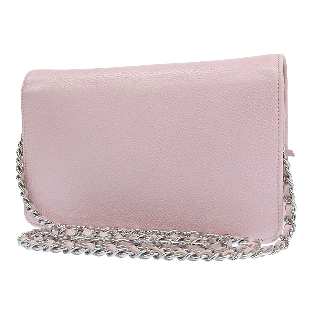 Used CHANEL Shoulder Bag Chain Wallet Crossbody Pouch Clutch Pink Caviar Skin 16