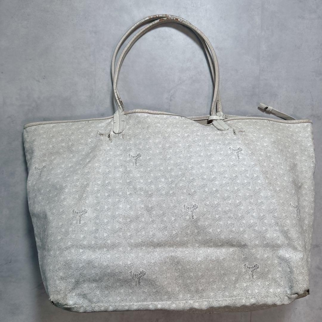 This Goyard Saint Louis tote is a stylish and practical choice—lightweight yet spacious enough for A4 storage. The white PVC leather has some wear and scratches, but it adds character to this chic bag. Perfect for everyday use, and shipping is fast with DHL. A great find for Goyard lovers!