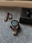 This Huawei Watch 4 Pro smartwatch is a great addition to your collection. With its stunning 49mm aerospace-grade titanium case and dark brown leather strap, this watch is perfect for any occasion. It is compatible with both iOS and Android operating systems and comes with a range of features that will keep you connected and healthy. The watch has a sleek AMOLED display, Bluetooth connectivity, NFC, GPS, and wireless charging capabilities. It also has a blood oxygen sensor, heart rate monitor, and sleep monitor to keep track of your health. With the AppGallery, you can easily access all your favorite apps. This smartwatch is a must-have for anyone who wants to stay connected and healthy. Has a small hair line on watch come with two watch bands one is for small wrist and leather band is for large wrist