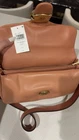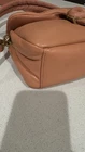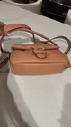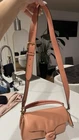 The product is a pre-owned medium-sized Coach shoulder bag in a peachy pink color. Made of leather, this stylish bag is perfect for women who appreciate quality and sophistication. With plenty of space for essentials, this handbag is a versatile accessory that can elevate any outfit.