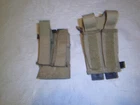 Lightly used set of two 1911 and similar single stack pistol magazine pouches. Each hold 2 mags and has hook and loop closures. They are tan and have plastic clips to hold to your belt. I have described the items condition to the best of my knowledge, please look at the pictures and contact me with any questions or problems before bidding or leaving feedback. Feel free to make offers if you would like I always respond and it can't hurt to ask.