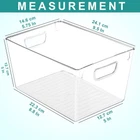 Utopia Kitchen Clear Organizer Bins - 6 Pack Pantry Medium (Pack of 6), Product Details Color: Clear Material: Plastic Product Dimensions: 5"L x 9.5"W x 5.75"H Item Weight: 4.2 Pounds Brand: Utopia Kitchen SET OF 6 PANTRY STORAGE ORGANIZER – Bask in the glory and take pride of your weekly grocery haul, with this minimalist shatter-resistant, square storage containers, each measuring 9.5 x 5 x 5.75 Inches. SPICE UP YOUR HOME – Keep your mind cool and stuff organized with the fridge organizers and storage clear devised just for you! The clear BPA plastic organizers are artistically fabricated, for you to locate your items at a glance. DELIGHT IN THE DETAILS - The square patented acrylic organizers storage bins is uniquely crafted to cater to space- efficiency and avoids the enigma of storing your pantry, drinks, fruits, vegetables, yogurts, canned foods, baby food, condiments and bottled beers. SPACE EFFICIENT PARADIGM - The square patented container is uniquely crafted with built-in, easy-grip side handles, to cater to space- efficiency and portability. Enjoy a spill-free storage solution thanks to the sturdy foundation. CARE GUIDE - It is recommended to clean the organizers with a wet cloth and a light soap. Avoid keeping the containers damp, post-washing to ensure the longevity of the set. Is not dishwasher-safe.