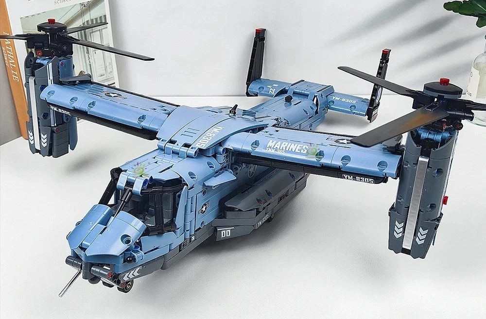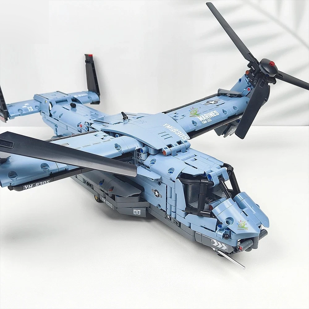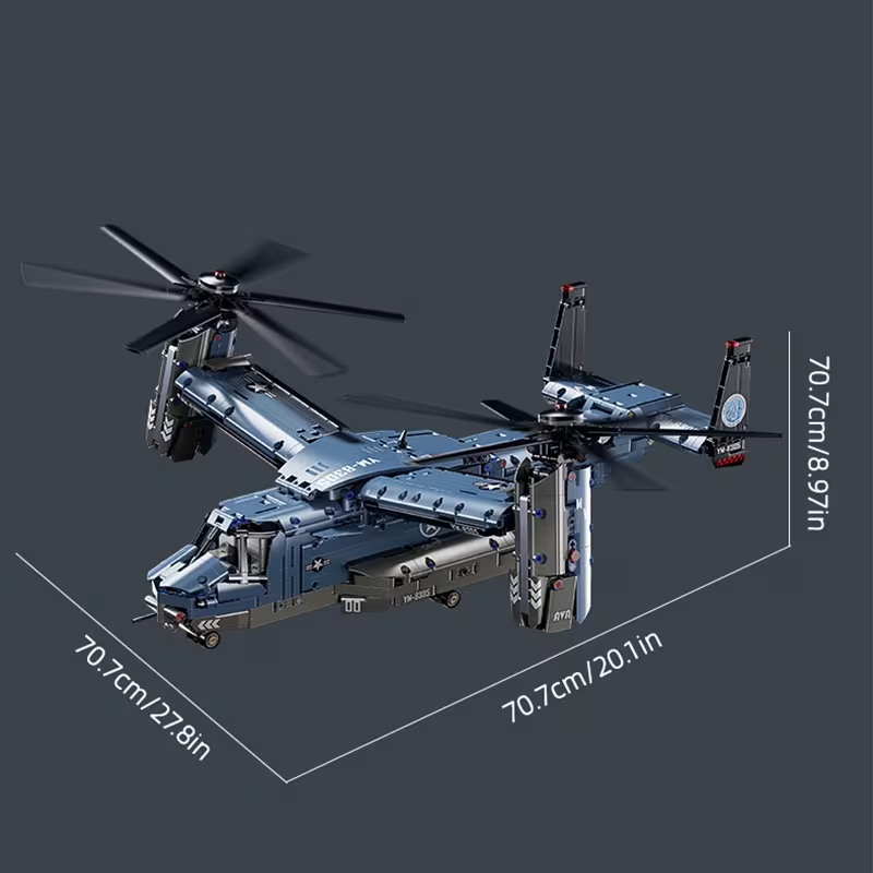 ✈️ V-22 Tiltrotor Aircraft Building Block Set – Detailed Military Model Bring engineering and aviation together with this premium V-22 Tiltrotor Aircraft building block set. Designed for fans of military aircraft, collectors, and builders who enjoy realistic structural details and an engaging hands-on challenge. Made from high-quality, eco-friendly ABS plastic, this model is perfect for display or as a fun project for both teens and adults. 🧱 Product Features Model Type: V-22 Tiltrotor Aircraft Total Pieces: 1486 precision small blocks Skill Level: Intermediate to Advanced Recommended Age: 14+ Material: Non-toxic, eco-friendly ABS Compatibility: Works with major small-block building systems Instruction Manual: Full-color, step-by-step guide included The model includes realistic features such as tiltrotor mechanisms, structural panels, cockpit detailing, and functioning rotor elements, making it ideal for display or for aviation-themed collections. 📦 Package Includes 1 × V-22 Tiltrotor Aircraft Building Block Set 1 × Full-color Instruction Manual Note: Retail box not included unless specified. Shipped securely in protective packaging. ⚠️ Safety & Compliance CE-compliant materials No batteries/electrical components Choking hazard: small parts — not for children under 3 🎯 Why This Model Stands Out ✔ Highly detailed military-style aircraft model ✔ Movable rotors for added realism ✔ Encourages creativity, engineering thinking, and hands-on focus ✔ Great for aviation fans, collectors, and brick hobbyists ✔ Makes a unique home decor display piece ✔ Compatible with most small-block brands