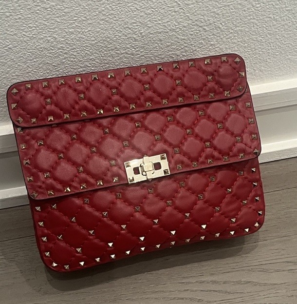 VALENTINO GARAVANI Nappa Medium Rockstud Spike Shoulder Bag Red Top Handle Purse. Condition is Pre-owned - Excellent. Shipped with USPS Ground Advantage.