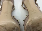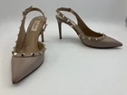 VALENTINO GARAVANI Rockstud Leather Slingback Pumps Nude Beige EU 37.5 Made in Italy Heel 9cm Description Item No 846-31908-20251201 Brand Valentino Garavani Item pumps Gender Women Material Genuine Leather Accessory None Production features Authentic VALENTINO GARAVANI Rockstud slingback pumps. Elegant nude beige leather with iconic Rockstud detailing. Pointed toe design with a slim heel for a refined silhouette. Details Brand: VALENTINO GARAVANI Made in Italy Material: Leather Heel height: Approx. 9 cm Size on shoes: EU 37.5 (37 1/2) Size Reference (Approximate) US Women’s: 7 JP size: Approx. 23.5–24.0 cm These shoes were worn by our fitting model in a video. The model usually wears JP 23.5–24.0 cm shoes and has relatively wide feet. She reported that this pair fit comfortably and felt true to size. Authenticity Sourced from major professional auctions in Japan. Guaranteed 100% authentic and professionally inspected. Secondhand Dealer License Number: No. 431360059517 (Saitama Prefectural Public Safety Commission, Japan) Shipping & Customs United States: Shipped via DDP (Delivered Duty Paid). All customs duties, import taxes, and fees are included in the price. No additional charges upon delivery. All other countries: Free international shipping. Important Notes This is a pre-owned item. Please review all photos carefully. Minor imperfections not listed may exist due to normal use. If the item is significantly different from the description, we will respond sincerely and appropriately. Multilingual support available. Condition Details Pre-owned. There are scuffs and minor stains, especially on the toe areas. General light scratches and rubbing are present. Outsoles show noticeable wear, and the heel tips (rubber) are worn. No major structural damage, and the shoes are still fully wearable.