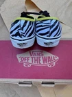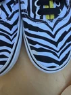 The VANS Authentic Zebra sneakers in Men's size 7.5 or Women's 9 are a stylish and athletic option. Check pics for glue stain on one of the shoes. Released in 2018, these white sneakers feature the iconic VANS Authentic design with a fun zebra theme. Perfect for casual wear, skating, or Halloween. These sneakers are sure to make a statement with their unique style and fashionable appeal.