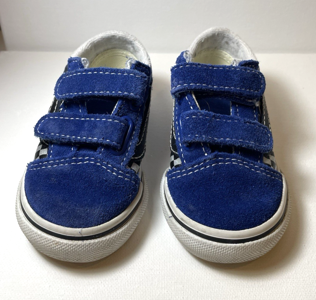 VANS Baby Old Skool Checkerboard Suede Blue Shoes Size 5 Toddler
