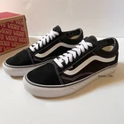 VANS Old Skool Shoe The Iconic Shoe that Brought our Sidestripe to Life: This is the Old Skool The Old Skool was our first footwear design to showcase the famous Vans Sidestripe although back then, it was just a random doodle drawn by founder Paul Van Doren. Since its debut in 1977, this low-top silhouette has established itself as an icon in the skate, music, and fashion scenes. From 90s street skaters and punks to current hip hop and fashion legends, the Old Skool has consistently been the go-to shoe for creatives who do things their own way. Iconic low-top, Sidestripe shoe Durable suede and canvas uppers Lace-up closure Reinforced toe caps Supportive padded collars Signature rubber waffle outsoles Classic Old Skool Color: Black/White Size: Mens 8/Womens 9.5 Pre-owned - Minimal signs of wear Thanks for looking! Check out my other items for more great deals!