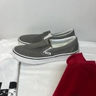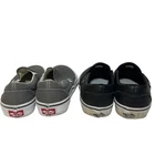 VANS OFF THE WALL T Shirt Shoes Lot of 4 Skater Casual Comfort Loafers Skater Casual Spring Summer Comfort Slip On Loafers Unisex Lot includes: 2 Size Small T Shirts One Red T Shirt with solid red back One White and black t shirt with checkerboard back 2 Pairs Vans Loafers Size 8 Women's and 6.5 Men's Gray Canvas and Black Leather T Shirts are in Excellent Pre-Owned Condition Shoes are in Good Pre-Owned Condition Approximate Measurements are: Bust 35 Length 25-26 I know the gray canvas shoes have been washed so they are a little snug fitting SMOKE FREE HOME