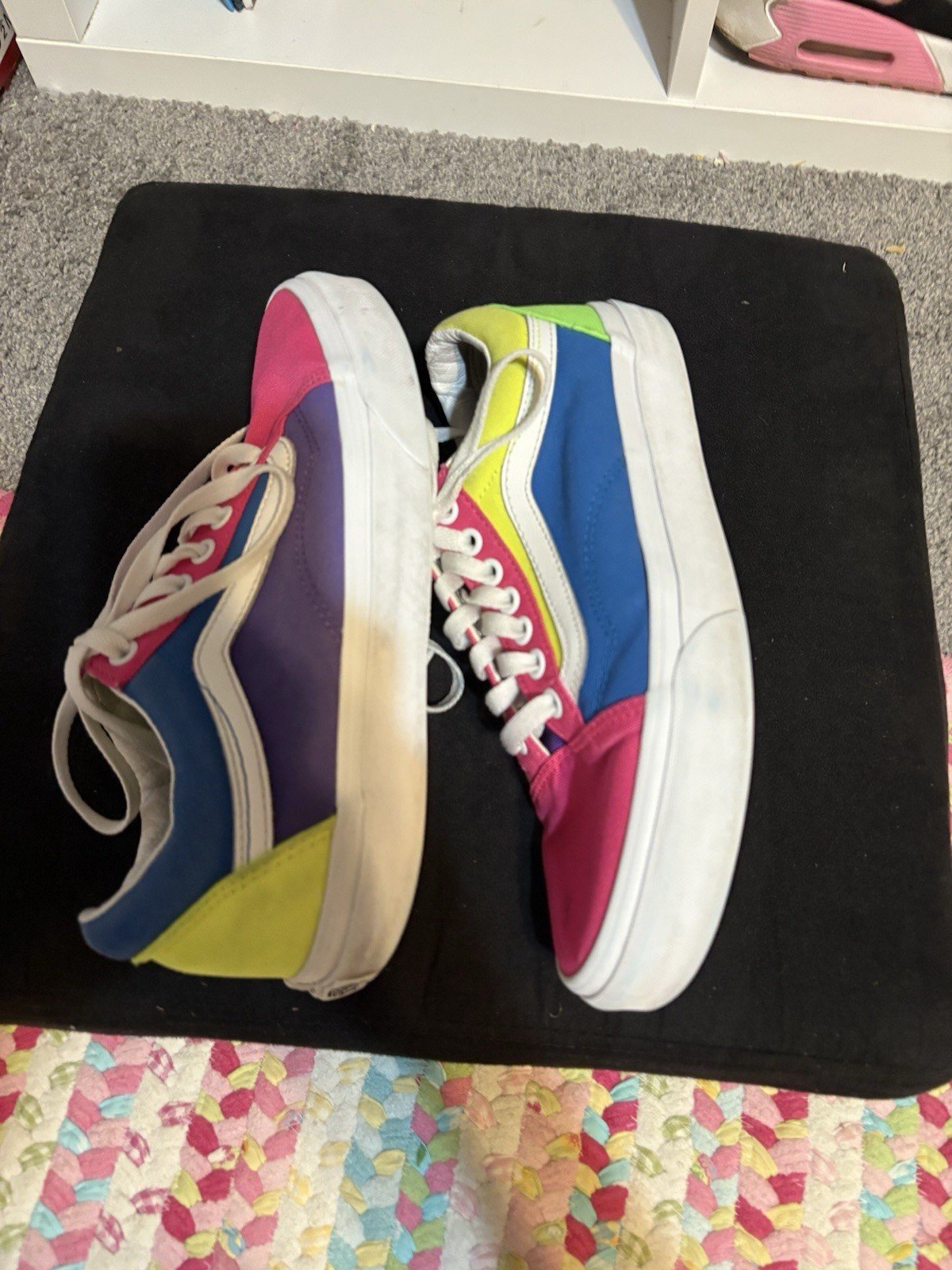 The VANS Off the Wall sneakers are a casual style lace-up shoe with a multicolor design and rubber cleat. Designed for athletic activities like skateboarding, these shoes offer comfort and standard shoe width for unisex adults in US shoe size 7. Made with canvas lining material in Vietnam, the VANS Off the Wall sneakers are a popular choice for the summer, fall, and spring seasons. With the iconic VANS brand and a rubber sole, these sneakers are perfect for casual wear and recreational activities.