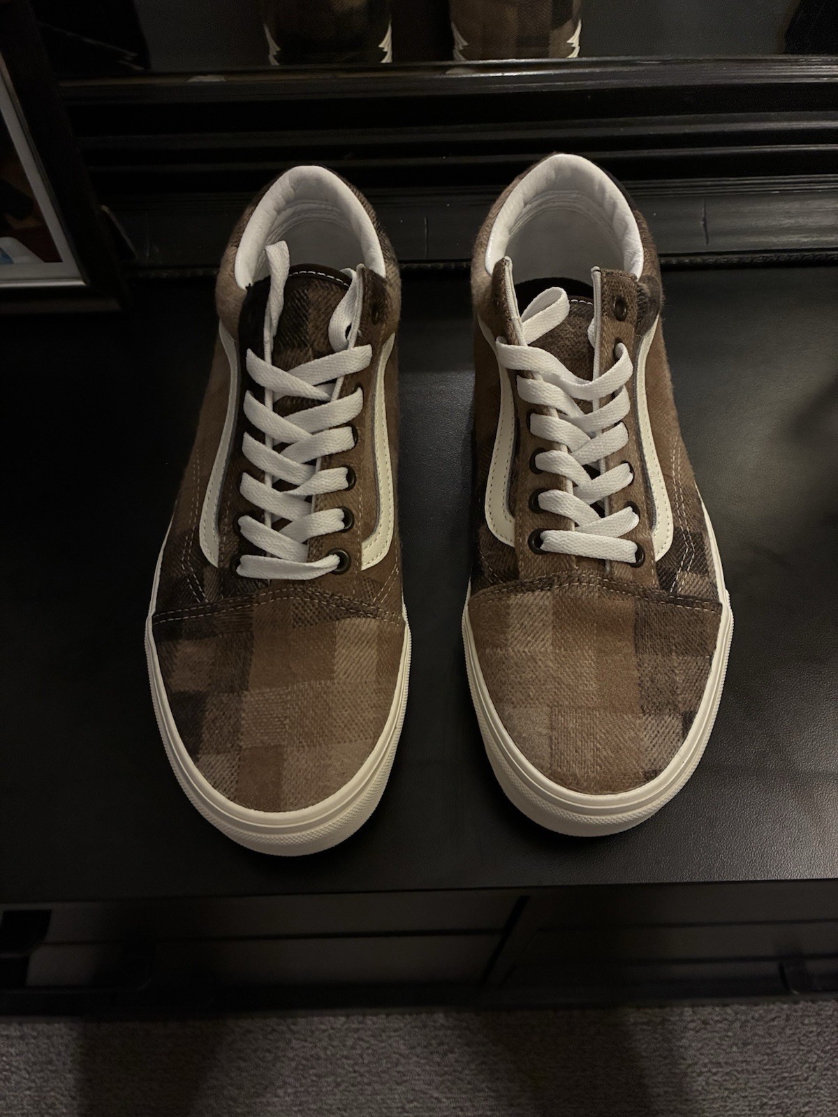 The VANS Old Skool Shoes in size 10 are a stylish and comfortable choice for casual occasions. Made with a canvas fabric featuring a beige color and lace-up closure, these sneakers offer a great fit for men looking for a classic and versatile shoe. The VANS Off The Wall model provides the signature style and comfort needed for all-day wear during the summer, fall, and spring seasons. Perfect for laid-back and trendy outfits, these shoes are a must-have for any fashion-forward man's wardrobe.