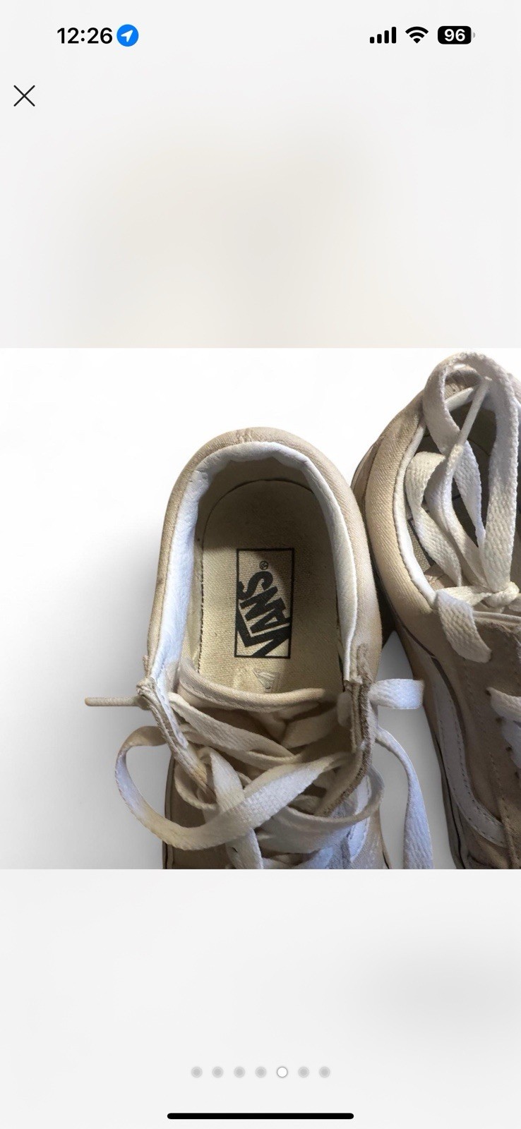 The VANS Off the Wall “Old Skool” Skate Shoes in Beige/White are a stylish blend of suede and canvas materials, featuring a lace-up closure and rubber outsole for durability. These athletic sneakers are designed for skateboarding and everyday activewear, with a low-top shoe shaft style and standard shoe width for comfort. The classic solid color pattern and iconic VANS branding make them a versatile choice for men in US size 4.5 and women in size 6, perfect for adding a casual and trendy touch to any outfit. Est. '77 | Feel Something New. The birth of our iconic SideStripe™, there’s always something new with the Old Skool. Description Style VN000CR54MG The Old Skool was our first footwear design to showcase the famous Vans Sidestripe, although back then, it was just a simple doodle drawn by founder Paul Van Doren. Since its debut in 1977, this low-top silhouette has established itself as an icon in the skate, music, and fashion scenes. From 90s street skaters and punks to current hip hop and fashion legends, the Old Skool has consistently been the go-to shoe for creatives who do things their own way. Elevated suede uppers help the Old Skool Pig Suede seal the deal. Details Iconic low-top, Sidestripe shoe Pig suede uppers Lace-up closure Reinforced toe caps Supportive padded collars Signature rubber waffle outsoles Classic Old Skool