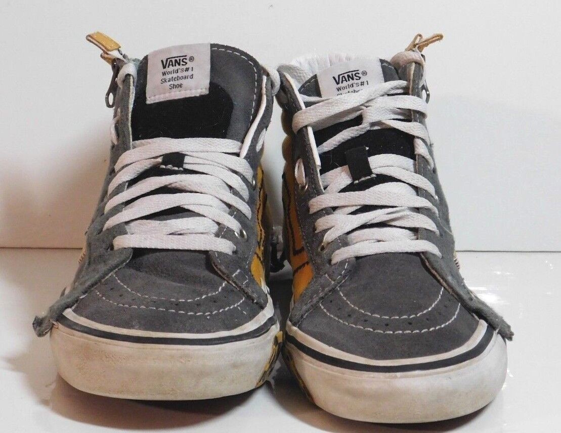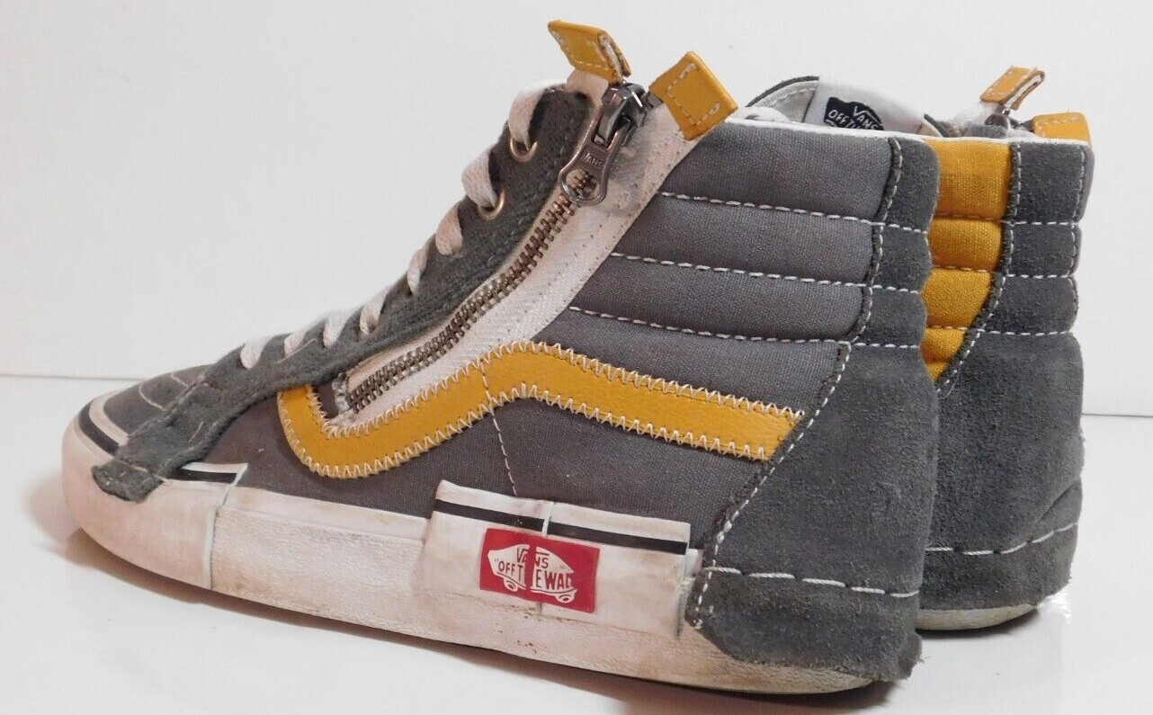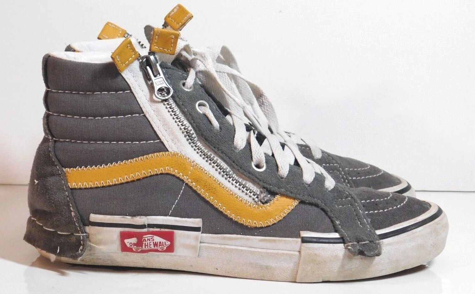 Brand: VANS Style: SK8 Hi Cap Reissue Pewter Mango Mojito Skate Athletic Shoes. Pewter material is suede, yellow is canvas. Rubber sole and leather interior shaft and zip and lace close. Please see pictures. Size: Men's size 6, Women's size 7.5 Condition: Very nice pre owned condition with just light sign of previous wear. Please see pictures. Store Policies: Please note we try to Reduce, Reuse and Recycle our shipping materials whenever possible while shipping your item safely. Most of our boxes, bubble wrap and packing fill has been previously used. We encourage you to do the same . Items must be returned in same condition as delivered Shipping is from Canada and normal handling time is 1-2 business days. Normal delivery is 7 to 21 business days to the USA We are happy to combine shipping on multiple items to give you the best rate possible Feedback will be left once you are satisfied with the transaction, please contact us if there is a problem. Please do not hesitate to ask if you have any questions. Thank you for looking
