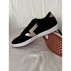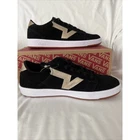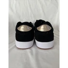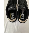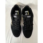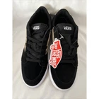 Elevate your sneaker game with these VANS Soland Suede Sneakers. These athletic shoes feature a low top, lace-up closure and comfortable cushioning for walking, school or skateboarding. The black suede upper material is accented with a gold metallic logo and solid pattern, making it versatile for casual and activewear occasions. The women's sneakers come in size 10 (US) and 7.5 (UK) with an EU size of 41. The VANS Soland model is part of the classic skate-themed product line and is brand new in the box, ready to be customized or worn as is. Get ready for any season and step up your sneaker game with these VANS Soland Suede Sneakers.