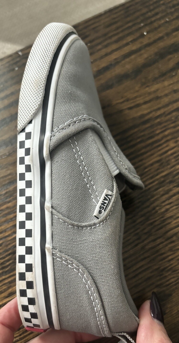 VANS Toddler 10 Classic Grey Slip On Sneaker Shoes Canvas Charcoal EUC. Condition is Pre-owned. Shipped with USPS Ground Advantage.