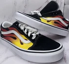 VANS Unisex Size M-6/W-7.5 Lace Up Flame Old Skool Low Top Skate Shoes Black NWT