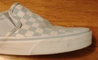 You are looking at a Pair of VANS Classic Women's Canvas Light Blue & White Checkerboard Slip-On Loafers Sneakers Shoes. Size: 8.5M. In Very Good Condition. Uppers are Canvas and Bottoms are Rubber. From a Smoke and Pet Free Home. See Photos for more Details and Description. Authentic.