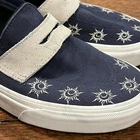 These VANS Women's Off The Wall Style 53 Mystic Originals Blue Shoes Loafers in size 7.0 are the perfect blend of casual and activewear. The slip-on style with a low top shaft and solid blue color make them versatile for various occasions such as walking, skateboarding, and running. With a rubber outsole, foam insole, and suede upper material, these sneakers offer comfort and durability. The iconic VANS brand and signature style make these shoes a must-have for any modern woman looking to make a statement with her footwear.