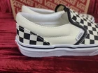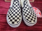 Elevate your young one's footwear game with the VANS Classic Slip-On Sneakers. Featuring the iconic checkerboard design in a striking black and white colorway, these unisex youth size 2 sneakers are a stylish nod to the brand's skate and recreation heritage. The durable fabric upper and classic canvas lining ensure a comfortable fit that's perfect for active kids, while the rubber outsole provides reliable traction for all-day play. Designed for versatility and comfort, these low-top sneakers boast a round toe shape and a moderate cushioning level that supports active feet. The easy slip-on closure makes them ideal for kids on the go, and the versatile style is suitable for a range of occasions from the playground to casual outings. With a shoe width that accommodates standard sizes and a flat heel for a steady stride, these VANS are ready for any season and every adventure. BRAND NEW IN BOX RIGHT OUT OF MAJOR DEPARTMENT STORE WITH THE ORIGINAL BOX, THE BOX DOES SHOW SOME LITE DAMAGE AS IT WAS IN THE BACK ROOM OF A SNEAKER STORE. YOU ARE PURCHASING THE EXACT ITEM SEEN IN THE PICTURES AND DESCRIBED IN THE TITLE. PLEASE USE THE PICTURES TO EXAMINE THE ITEM....IF WE CAN ANSWER ANY QUESTIONS BEFORE, DURING, OR AFTER THE PURCHASE PLEASE REACH OUT AND WE WILL PROMPTLY RESPOND. WE SHIP ONLY AFTER PAYMENT IS RECIEVED. WE ONLY SHIP TO THE U.S. UNLESS YOU USE EBAY GLOBAL THANKS SO MUCH FOR THE INTERESTED ROB AND KATHY