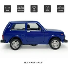 VAZ Lada Niva 1:32 Diecast Model Car Toy Vehicle Light Sound Doors Open Blue Item Type Diecast & Toy Vehicles Scale 1:32 Material Diecast and ABS Color Blue Dimension About L5.2" x W2.0" x H2.1" (L13.1 x W5.2 x H5.4 cm) Vehicle Type Vintage Car Function *Pull back *Two doors, engine cover and trunk lid can be open *Press the car or open the door, it will make sound and light Packing Packed in original color box, in excellent condition Power 3 x AG13/LR44 button cell , power is just for light and sound Tips *Great choice of gift for kids, especially for Birthday, Christmas and New Year Gift *Great item for collector, business gift, home decoration, office decoration, display Warning Don't put in mouth/Keep Away from Fire/Not for Children under 3 Years Notice Due to manual measurement, please allow a little error Package include 1 x 1:32 Scale VAZ Lada Niva Model Car (Batteries Not Included) Payment Delivery details Terms of sales Payment We accept paypal only. Delivery details We ship orders within 24 hours upon receipt of payment. Terms of sales We provide great products and service. If you have any problems with the order,please do contact us before leaving negative feedback and opening case on eBay.