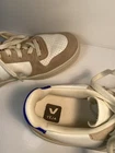 VEJA Leather Men's Sneakers. White with Tan Suede Trim. Men's size 8 1/2, Women's size 10, EUR size 42. Please see photos for detail and condition. Nice condition. Will be packed and shipped by either USPS, FedX, or UPS. Thanks!