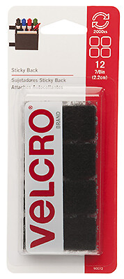 7/8", Black Velcro Sticky Back Squares, For Larger Jobs On Smooth Surfaces Such As Message Boards, Holiday Decorations, Etc, Easy To Display, Blister Card. Velcro Usa Consumer Pdts 90072 7/8", Black Velcro Sticky Back Squares, For Larger Jobs On Smooth Surfaces Such As Message Boards, Holiday Decorations, Etc, Easy To Display, Blister Card. ADDITIONAL INFORMATION PRODUCT MANUFACTURER: Velcro Usa Consumer Pdts MANUFACTURER'S PART NUMBER: 90072 UPC: 075967900724 HEIGHT: 7.370inches LENGTH: 3.120inches WIDTH: 5.750inches WEIGHT: 0.2400lbs Unless otherwise indicated, Ron's Home And Hardware only sells NEW items in the original manufacturer's packaging. Shipping All items ship from our location via Standard Ground shipping within 1-3 business days of receiving payment. RETURNS Your satisfaction is very important to us. Please contact us through eBay messaging regarding any problems before leaving negative feedback. Any defects, damages, or material differences with your item, must be reported to us within 7 days of receipt of the item or 30 days from date of shipment. The returned merchandise must be postmarked within 30 days of the shipment notification. Non-deliveries must be reported within 30 days of Shipment Notification. Undeliverable, unclaimed, refused, or insufficient addresses will be subject to a 20% restocking fee plus the cost of shipping.
