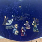 VELVET HAND BEADED SEQUIN NATIVITY SCENE PURPLE CHRISTMAS TREE SKIRT
