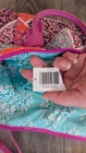 The Vera Bradley Hadley Satchel Shoulder Bag in Modern Medley Patchwork Quilted Preppy style is a medium-sized bag with a rectangular shape and a zip closure. The bag is made of cotton, polyester, and microfiber with a multicolor exterior and a multicolor lining. The bag features a detachable strap, pouch accessories, and strap accents with zipper and embroidered details. The bag is perfect for travel, casual wear, workwear, and business occasions. The geometric pattern and quilted finish make it a classic and modern piece with a preppy and colorful theme. The bag is 17 inches wide and 10 inches tall.