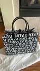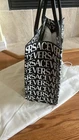 This canvas tote bag is adorned with a central La Medusa plaque and a contrasting Versace Allover logo. The rigid top handles are crafted from leather, and the spacious interior has a zipped pocket and a protector strap. La Medusa plaque Versace Allover print Double top handles with internal protector strap Internal zipped pocket Outer composition: 100% Cotton Lining: 100% Cotton Trim: 100% Calf leather