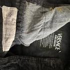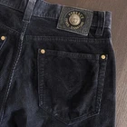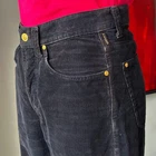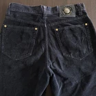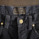 VERSACE J E A N S S I G N A T U R E Authentic vintage Gianni Versace straight washed navy blue jeans from Fall/Winter 1993/94 Made in Italy Straight leg 5-pocket design Color: washed navy blue with gold-tone buttons. The pictures do not always reflect the exact color of the item. The colors you see depend on the camera, the lighting and your computer monitor High waisted fit Front buttons closure, 3 front pockets, 2 back pockets and 5 belt loops. Front closure has one gold-tone Medusa button 100% Cotton Size 31- 45 Approximate measurements with garment lying flat: Waist 15.5 inches Inseam 31.5 inches Outseam 42 inches Leg Opening 7.5 inches Front rise 9.5" to bottom of waistband, 11" to top of waistband Back Rise 15.5 inches Hips 21 inches It's in very good condition, kept with care, the leather belt loop with label is slightly worn! Please note that vintage items are not new and therefore might have minor imperfections. I'm vintage Versace expert Peter: 2023jan24.32031