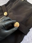 This stunning Versace X H&M silk dress is a must-have for any fashion-forward woman. The midi-length dress features an eye-catching geometric pattern in black, with asymmetrical sleeve accents and a button closure. Perfect for a holy communion, party, or business occasion, the dress is made from high-quality silk with a canvas fabric type. The dress is a size S/34, with a plus size type and a designer, bohemian, city, and classic theme. It is suitable for summer, fall, and spring seasons and has accents such as embroidered logos. Made in Italy, the dress is not vintage and is not handmade. Get ready to turn heads with this gorgeous piece.