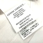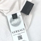 This Versace tee is a must-have for any fashion lover! The white and gold combo is so chic, and the cotton fabric feels soft and comfy. The fit is perfect—flattering but not too tight. Even though it's pre-owned, the light stains are barely noticeable. Great quality for the price, definitely worth adding to your wardrobe!