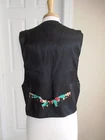 HOLIDAY VEST DESCRIPTION : BRAND : JLN USA SIZE : Large COLOR : Black background DESCRIPTION : Vest - buttons in front - decorative tie in back - Holiday/Christmas print (candy canes, gingerbread, Santa, reindeer, holly, bells, etc.) MATERIAL : Cotton / acetate CONDITION : Excellent used condition. (One small nick / fray in collar - see pics) PAYMENT : Payment is due within 3 days of the end of the auction. SHIPPING : Shipping is via US Post Office ONLY. RETURN POLICY : I list items to the best of my ability and try to describe each item as best as possible. Most of the items I sell are purchased at thrift shops/garage sales/etc, therefore I do not know the history to each item. Unless stated new, they are pre-owned items. I cannot guarantee items I sell are from smoke/pet free homes originally. My home is smoke free, however, I do have pets. Because computer monitors and phone screens vary in their ability to display color, color of the actual item may vary slightly. Color is not an acceptable reason for return. Items may be returned for a refund of bid price only (I will not refund any postage). Refunds will be issued once I receive the item back in the same condition as it left. If you have any problems please email me before leaving feedback. Please check out my other items - I will gladly combine shipping! Email me if you have any questions.